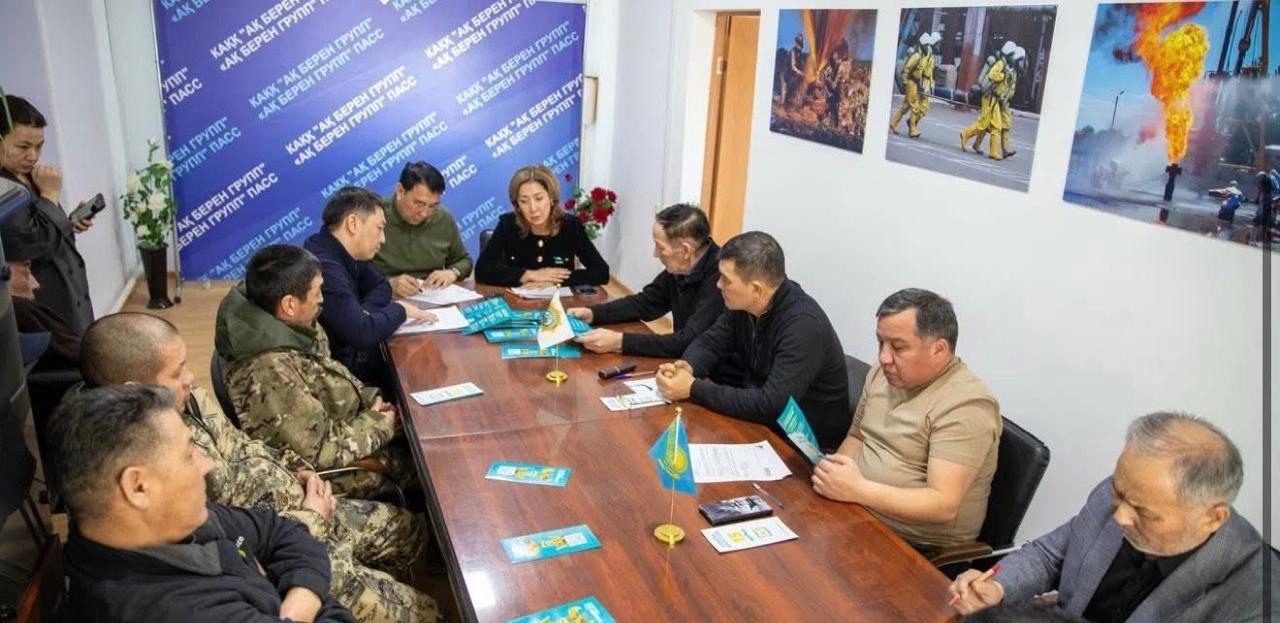 «Әділетті және Прогрессивті Қазақстанның Халықтық Конституциясы үшін!» өңірлік коалиция мүшелері – Берікқали Сәрсенғалиев, Бағыт Шеркешбаева, Ғалымжан Өтебаев кәсіби авариялық-құтқару қызметі «Ақ Берен групп» ЖШС қызметкерлерімен кездесті.