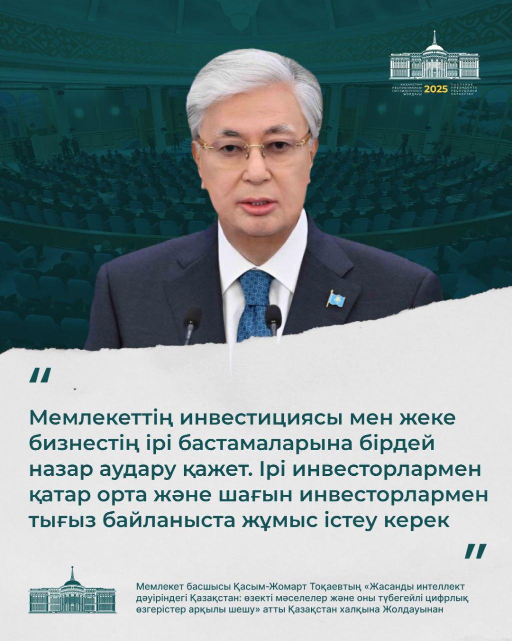 Мемлекет басшысы Қасым-Жомарт Тоқаев өз Жолдауында экономикалық өсімнің басты қозғаушы күші ретінде инвестиция мен жеке кәсіпкерлікті дамыту қажеттігін атап өтті. Бұл – ел экономикасын әртараптандыру мен жаңа жұмыс орындарын ашудың нақты жолы.