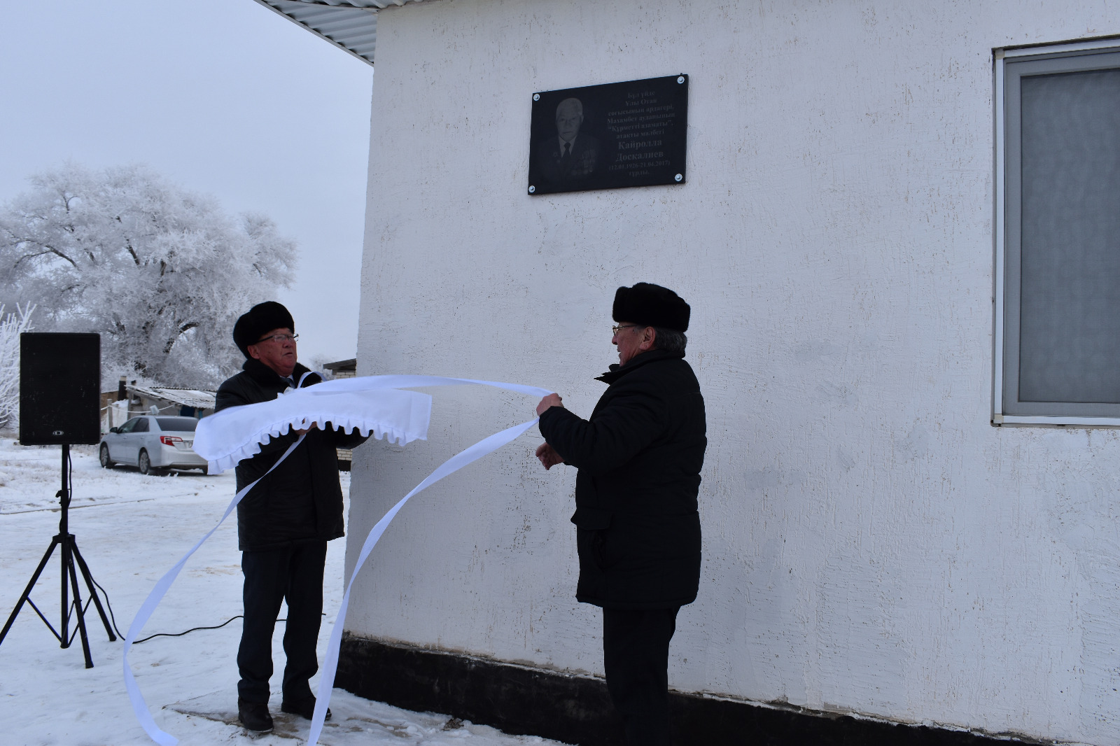 Бүгін Жалғансай ауылында ауданның Құрметті азаматы, Ұлы Отан соғысының ардагері және ауылшаруашылығы саласының дамуына еңбек сіңірген Досқалиев Қайролла Досқалиұлына арналған мемориалды тақтаның ашылу шарасы өтті.