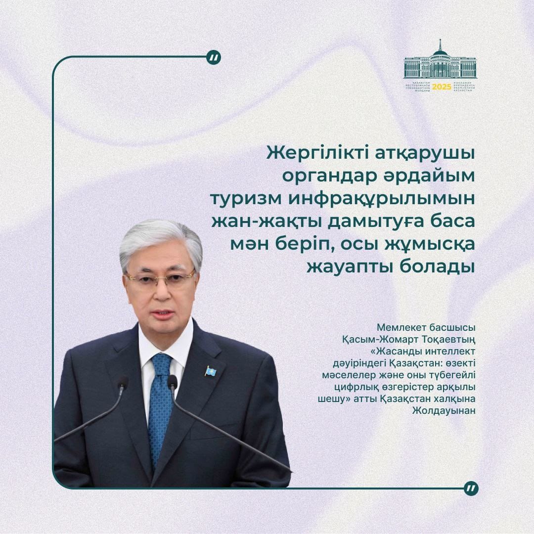 Президент Қасым-Жомарт Тоқаевтың Жолдауында туризм инфрақұрылымын жүйелі түрде дамытуға басымдық беру – өңірлердің әлеуетін арттыруға бағытталған тиімді қадам. Бұл міндет жергілікті билік пен қоғам тарапынан бірлескен күшті талап етеді.