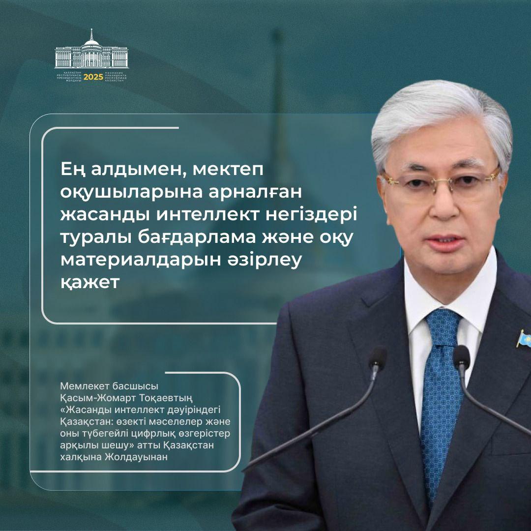 Мемлекет басшысының Жолдауында көтерілген жасанды интеллектті білім беру саласына енгізу мәселесі – уақыт талабынан туындаған, болашаққа бағытталған нақты шешім. Бұл бастама жас ұрпақтың әлеуетін арттырып қана қоймай, еліміздің инновациялық даму жолына түсуіне негіз қалайды. Сондықтан Жолдауда белгіленген міндеттерді сапалы жүзеге асыру – барша қоғам үшін маңызды. Болашақ білімді де білікті ұрпақтың қолында екені сөзсіз.