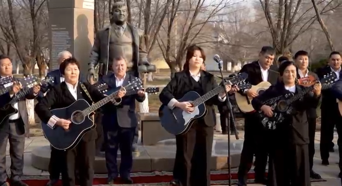 📌 Соның бір дәлелі, бүгін Табылды Досымовтың 60 жылдығына орай, ақын ескерткішінің алдында 60 дендерлік гитарашы бас қосып “Сәйгүлік” әнін шырқады. Рухы шат болғай!