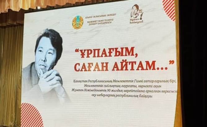 Шара Мәдениет және тілдерді дамыту басқармасы мен халық шығармашылығы орталығының ұйымдастыруымен Қазақстан Республикасының Мемлекеттік Гимні авторларының бірі, көрнекті ақын, мемлекеттік сыйлықтың лауреаты Жұмекен Нәжімеденовтің 90 жылдығына орай өтуде.