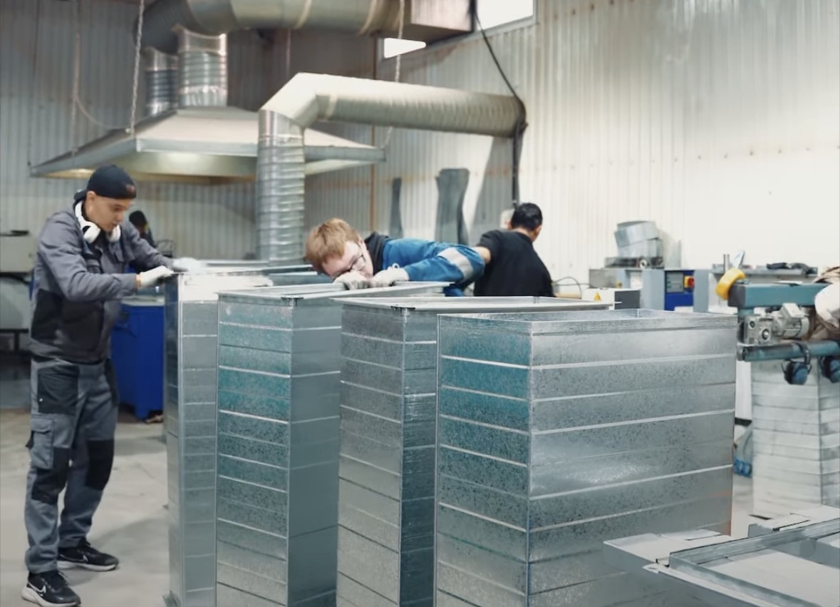 - «ДАМУ» қорының кепілдік қолдауымен біз қаржыландыру алып, өндірісті іске қостық. Қазіргі уақытта желдету жүйелерін өндіретін цехта шамамен 12 адам жұмыс істейді. Металды өңдеу көлемі тәулігіне 5 тоннаға жуықтайды. Біз тікелей кесу арқылы қайта өңдеу жұмыстарын жүргіземіз,- деді өндіріс жөніндегі директор Федор Ефремов.