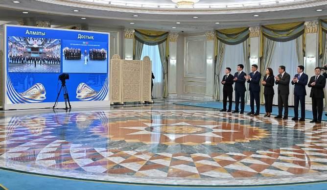 – Жұмысшыларымыз үш жылға жуық уақыт бойы күні-түні табанды еңбек етті. Осындай белсенді жұмыстың арқасында теміржол мерзімінен бұрын іске қосылмақ. Мұны, шын мәнінде, тарихи сәт деуге болады. Бұл – баршаңызға ортақ қажырлы еңбектің жемісі. Бәріңізді шын жүректен құттықтаймын! Зор ризашылығымды білдіремін. Жаңа жол жүк тасымалының көлемін 5 есе арттыруға мүмкіндік береді. Сондай-ақ экспорттық тауарларды жеткізу уақытын қысқартып, транзиттік әлеуетімізді күшейте түседі, – деді Қасым-Жомарт Тоқаев.