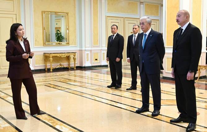 Мемлекеттер басшыларына қазақ-әзербайжан мамандарының Орта дәлізді дамыту бойынша атқарып жатқан жүйелі жұмыстары жөнінде мәлімет берілді.