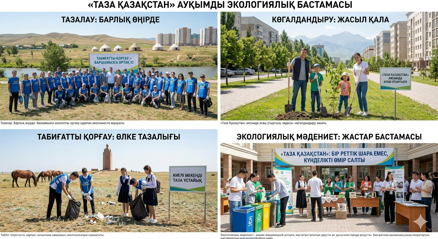 «Таза Қазақстан» экологиялық акциясы – бұл тек сенбілік немесе бір реттік шара емес, ол қоғамның экологиялық мәдениетін қалыптастыруға бағытталған ауқымды бастама. Аталған акция аясында еліміздің барлық өңірлерінде аумақтарды тазалау, ағаш отырғызу, көгалдандыру және табиғатты қорғау жұмыстары жүйелі түрде жүргізілуде.