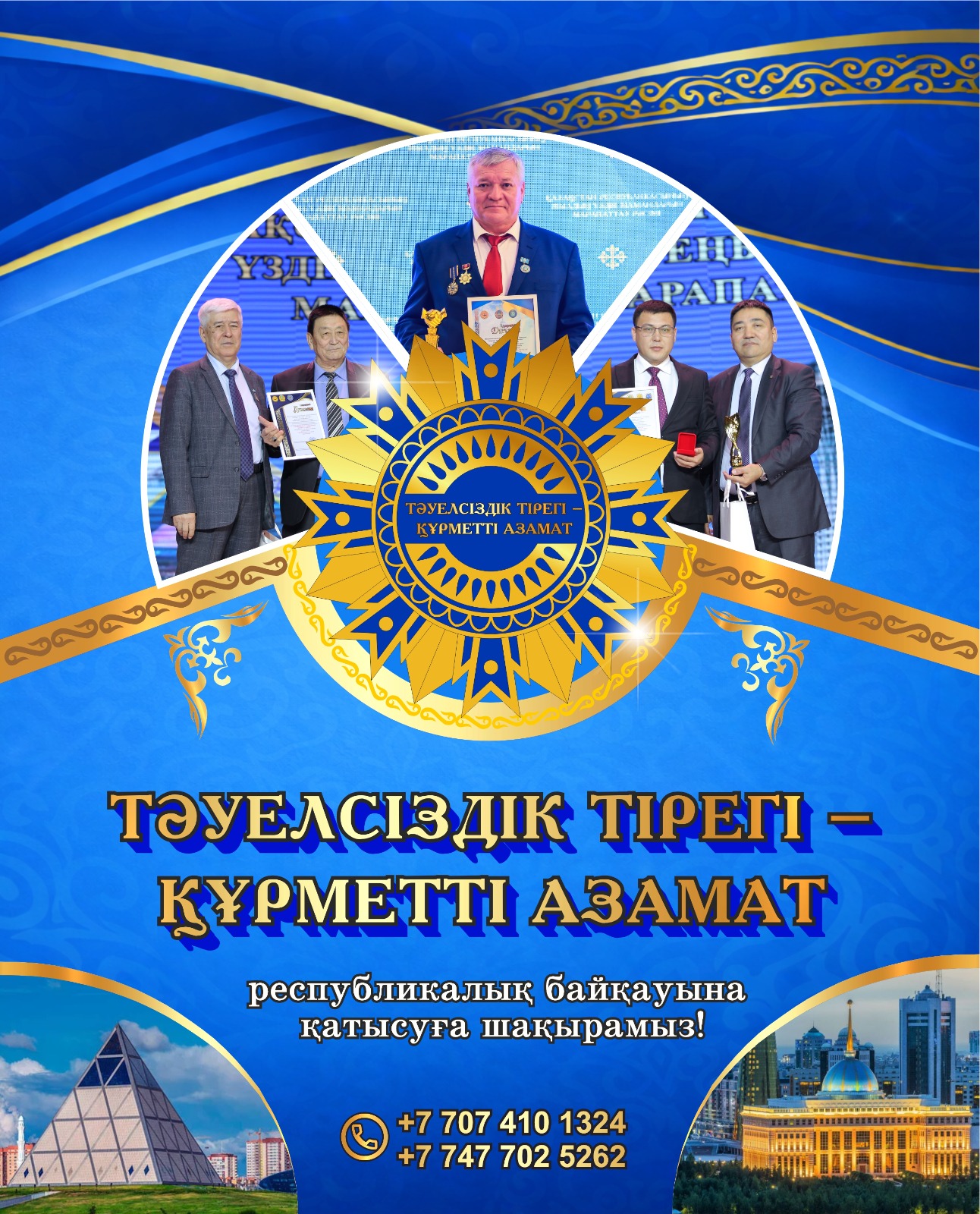 ҚР Тәуелсіздігінің 35 жылдық мерейтойына орай «Жаңа Қазақстан» Республикалық инновациялық орталығының ұйымдастыруымен өтетін «ТӘУЕЛСІЗДІК ТІРЕГІ – ҚҰРМЕТТІ АЗАМАТ» атты республикалық байқауына барлық сала өкілдерін қатысуға шақырамыз!