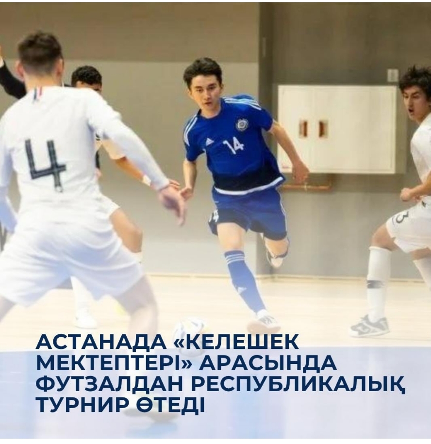 Сәуір айының 14–18 аралығында «Келешек мектептері» оқушылары арасында футзалдан республикалық жарыс өтеді. Турнирдің мақсаты - мектеп спортының дамуына серпін беру, оқушылар арасында футзалды насихаттау, сондай-ақ спорттық-тәрбиелік жұмыстың сапасын арттыру. Сонымен қатар мектепаралық жарыстарды ұйымдастырудың тиімді моделін қалыптастыру көзделген.